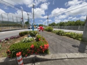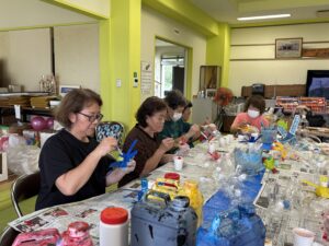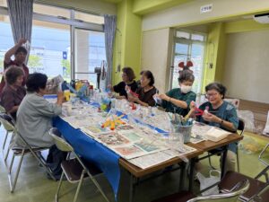 根差部地域を中心にとよみ小、長嶺小・中学校などでも美化活動を続ける「根差部花友会」の与儀会長より「根差部公民館で市中央公民館の移動講座を活用して皆でペットボトル風車を作るから見においで~」お声かけ頂き、活動見学へ♡