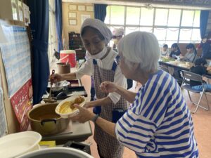 担当し、カレーのほか手作りの福神漬け、オクラの和え物が提供されました