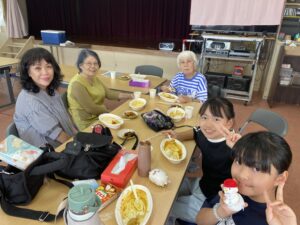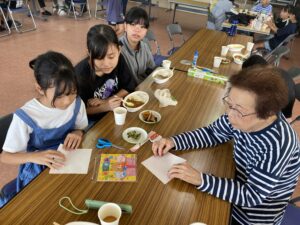 地域の子どもと大人が一緒に食事を頂き、おしゃべり、折り紙での交流もあり