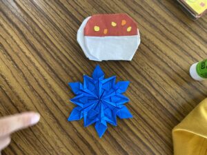 Youtubeを見ながら折り紙で雪の結晶を作成していました