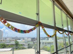 美味しいカレーを頂くお礼に…と 子ども会は会場の飾りつけを担当