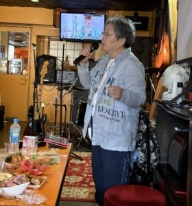 最初はハジカサーしていましたが1曲歌い始めると「懐かしいね~!」、「○○って曲ある?」と楽しそうに歌っていました🎤(沖縄民謡ではカチャーシ~♪)