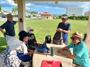 ゆんた倶楽部のみなさんはグラウンドゴルフだけでなく、なるべく「ゆんたく」の時間を確保しようと