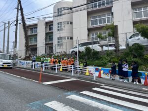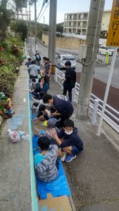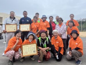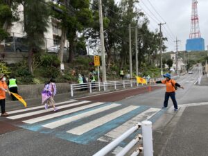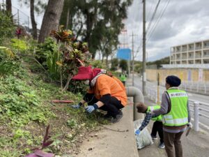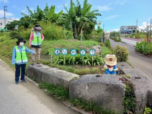 根差部花友会、豊見城警察署で美化活動&交通安全見守り活動(R6年2/8/長嶺小中学校通学路)