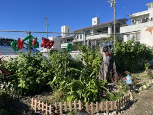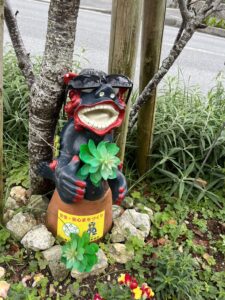 花友会の活動のおかげで根差部地域、周辺の小中学校にはきれいな草花とかわいらしいシーサーがいっぱいです✨