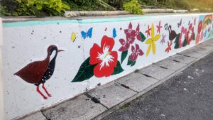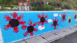 」というアイディアから、12月に「壁画プロジェクト」を立ち上げ、学校・企業・花友会などで協力して今年の4月に立派な壁画が完成しました✨