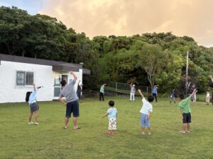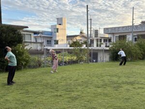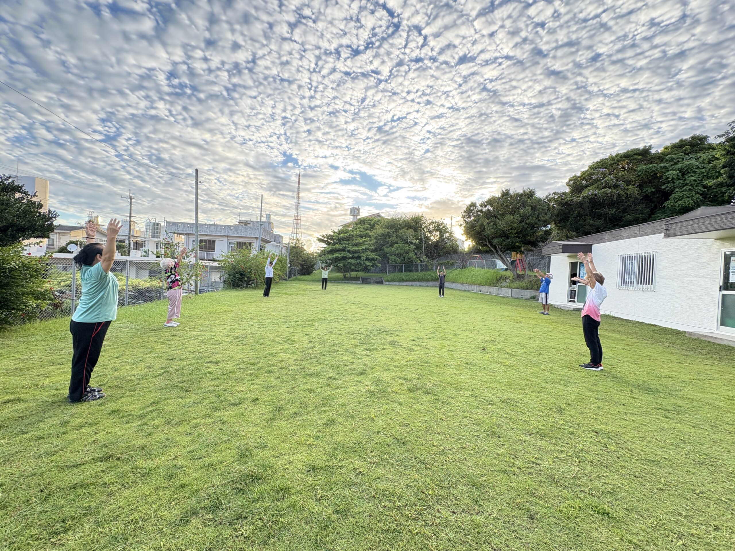 きっかけ:地域で早朝ウォーキングをしていた2名の女性から「皆で集まって何か活動がしたい!」と声があり、当時の比嘉自治会長が「3名集まったらラジオ体操をしよう!」と企画✨チラシを作成し地域に配布後、R6年8/1(木)に自治会長を含めた3名の住民で週に3回のラジオ体操をスタート!朝日を浴びながら皆で体を動かしています♪