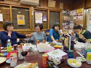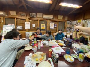 各自食事を持ち寄り、みんなでワイワイゆんたくしながら食事を楽しみます。