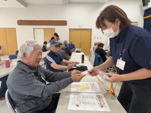 認知症地域支援推進員より「オレンジカフェ」のお知らせ/講義後『認知症サポーター(応援団)』を証明するカードを配布✨