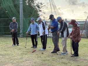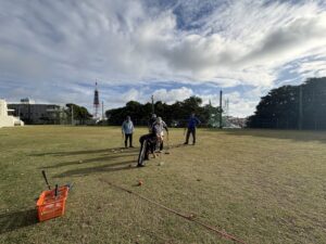 嘉数ガジュマル会ではゲートボール大会前になると週に3回(火木土)に集中的に練習するそう