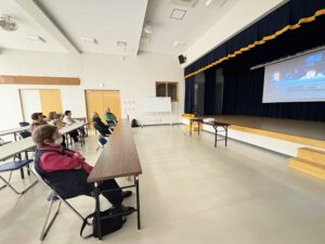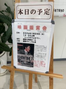 市の「骨コツ転倒骨折予防教室」が終了後、当初はゆんたくをしていたそうですが、老人会の加入促進、会員同士の交流を兼ね、嘉数老人会長が月に1度の映画観賞会を開催!