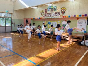 空手を指導して頂いている瀬名波先生はなんと当日がお誕生日でした。25年もボランティアで指導されており、この日85歳になられました。いつまでもお元気でご指導よろしくお願いいたします。
