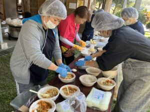 【炊き出しコーナー】(エコシティとはしな自治会、学生ボランティア)
