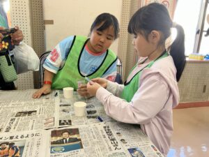 楽しく持ち歩けるように絵をかいたり、シールを貼ったり、ビーズを飾ったりと自分の好きなデザインにしてもらいました。