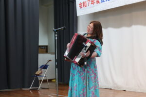 高良さんのお話の後、山原麗華さんによるアコーディオン演奏♬素敵な歌声と元気な笑い声に会場は大盛り上がり♪