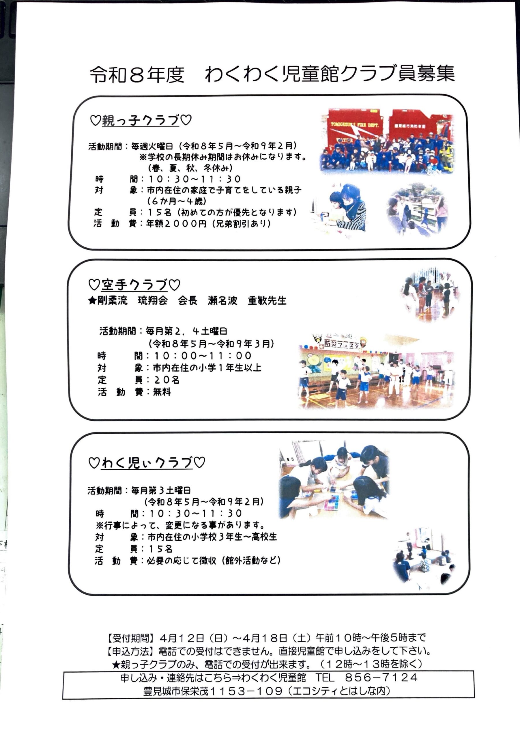 現在「親っこクラブ・わく児ぃクラブ」の枠がまだあります。
